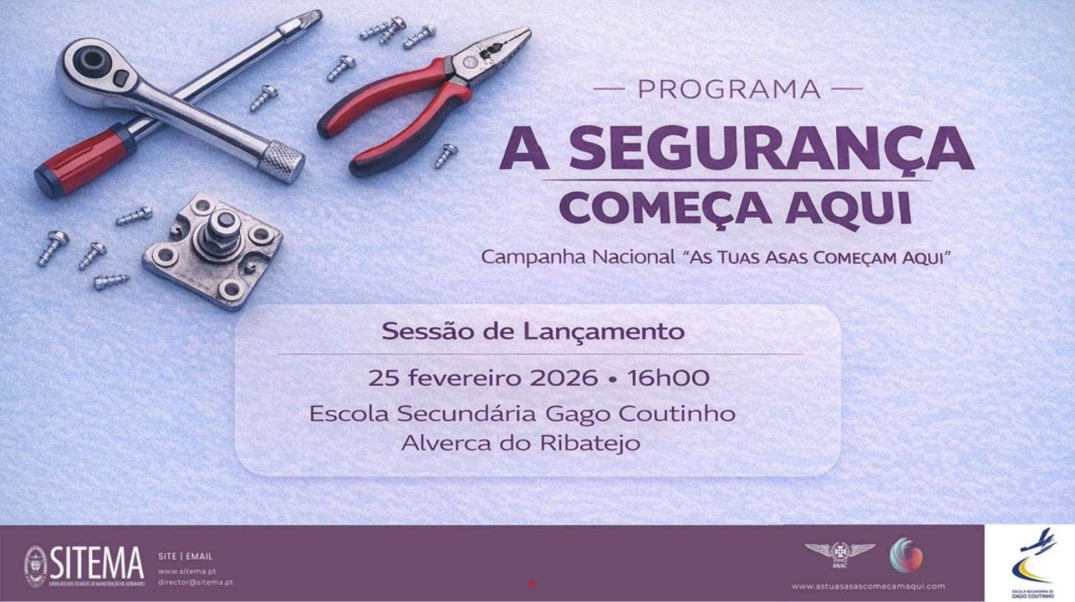 O SITEMA, com o apoio da ANAC, promove o lançamento do programa “A Segurança Começa Aqui”, integrado na campanha nacional “As Tuas Asas Começam Aqui”. A sessão de apresentação pública…